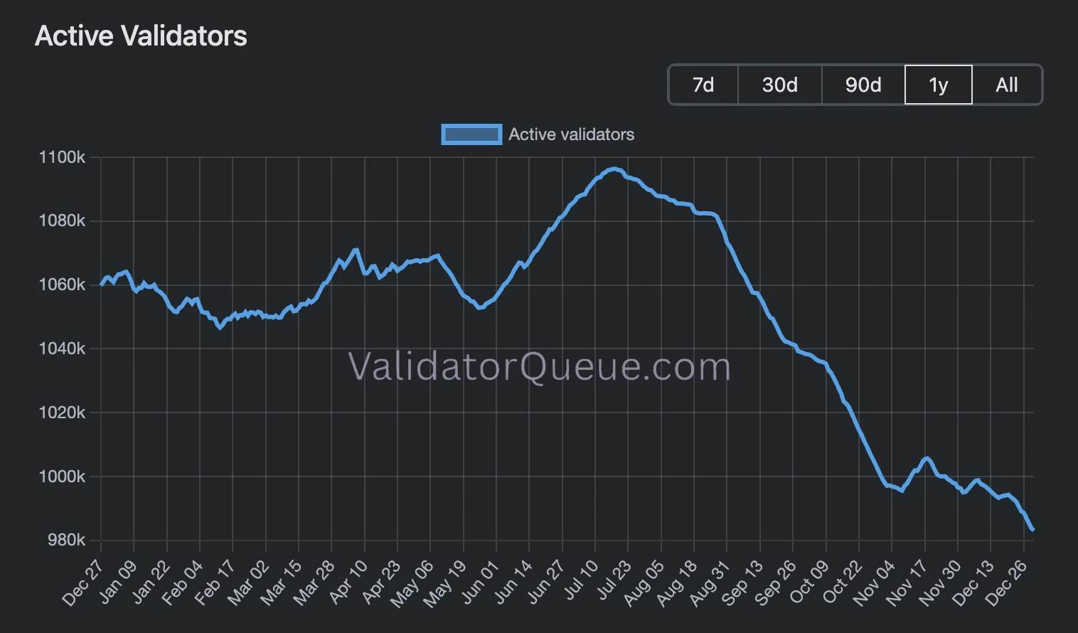 The validator count itself declined throughout the second half of the year to levels not seen since mid-2024.