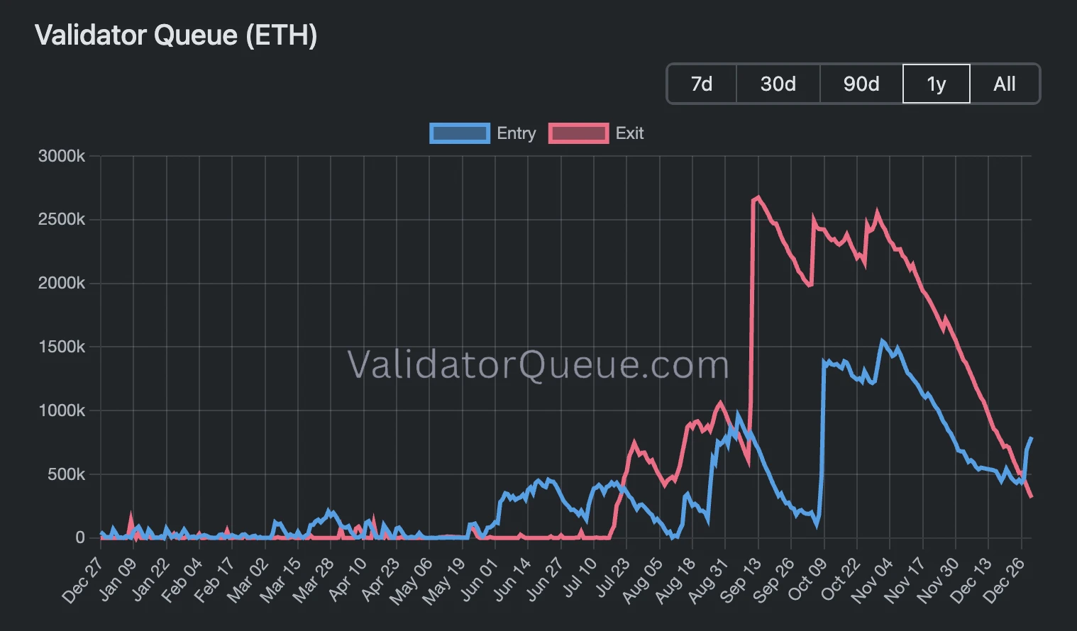 The current entry queue dominance represents a sharp departure from trends that persisted through most of 2025. Exit requests significantly outpaced entries from July through December, reaching peak levels in early September.